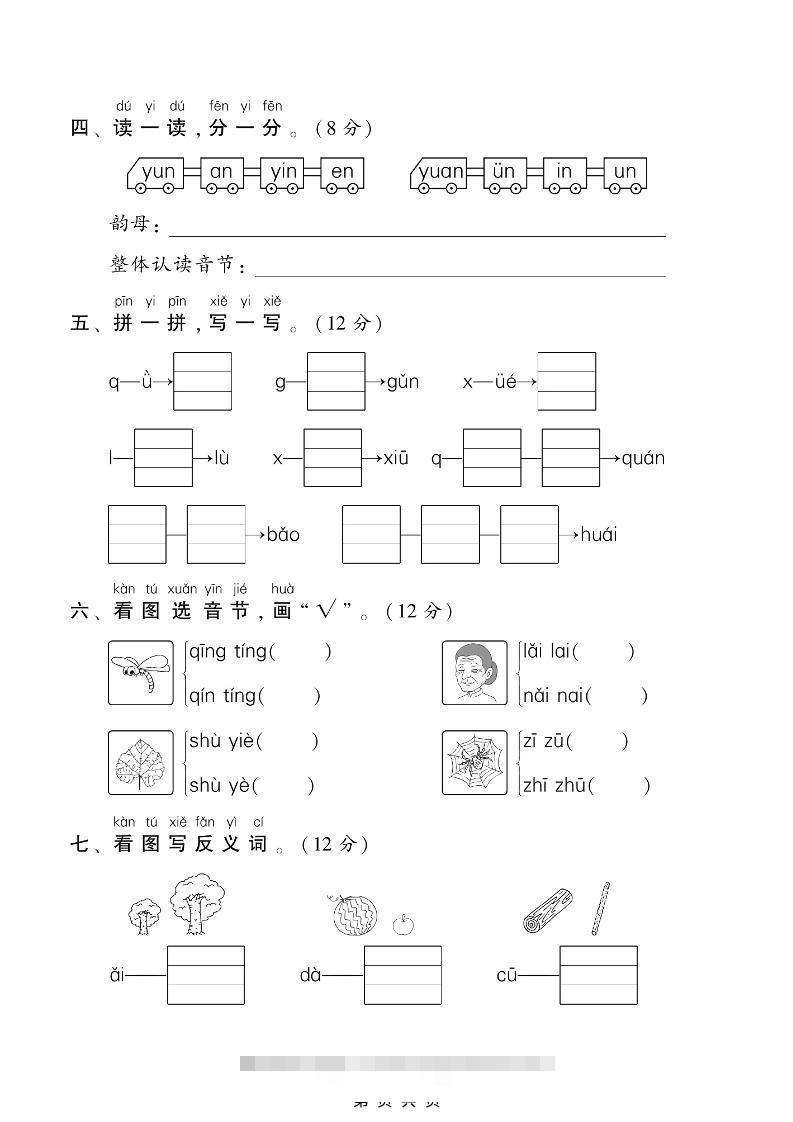 一年级上语文汉语拼音专项测试卷admin30天前发布关注私信000一年级上语文汉语拼音专项测试卷此内容为付费资源,请付费后查看¥9.9免费免费暂时无法购买,请与站长联系格式pdf页数6 页大小3.49 MB付费资源 ——预览已结束,还剩4页未读——开通会员后可免费下载高清完整文档 THE END小学语文 喜欢就支持一下吧收藏