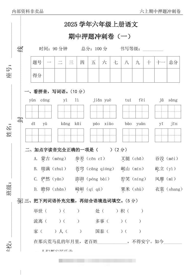六上语文期中押题冲刺卷5套(含答案39页)admin26天前发布关注私信000六上语文期中押题冲刺卷5套(含答案39页)此内容为付费资源,请付费后查看¥9.9免费免费暂时无法购买,请与站长联系格式pdf页数39 页大小961.98 KB付费资源 ——预览已结束,还剩37页未读——开通会员后可免费下载高清完整文档 THE END小学语文 喜欢就支持一下吧收藏